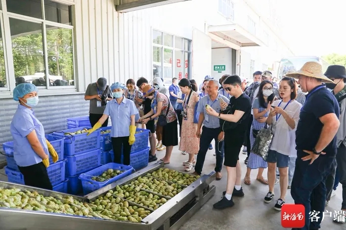 随后,在符文英的带领下,嘉宾们参观了诺丽果的清洗、烘干、发酵等深加工流程。海外传播官大米(托米·科尔曼)品尝完诺丽果酵素告诉记者,海南气候条件很适合热带植物的生长,从农产品到工厂,通过深加工拓宽了农产品的产业链,这种模式很好。