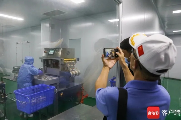 媒体采访团的记者编辑们走进海南万维生物制药技术股份有限公司的工厂车间参观采访。记者 李昊 摄