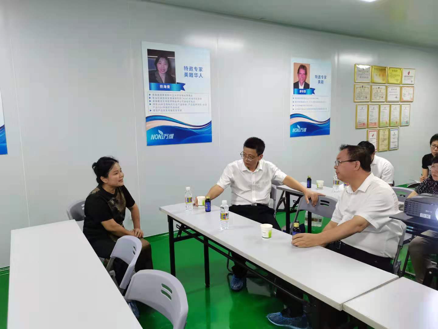 调研组在深加工基地考察后听取了公司创始人符文英教授关于万维生物及万宁市诺丽产业协会的情况汇报。结合近期对海南省尤其是万宁市诺丽产业的调研,调研组一行就如何推动万宁市诺丽产业高质量发展展开研讨,并就如何加强顶层设计,培育发展未来产业;加大政策支持和资金投入,为产业发展提供保障;加大科技投入,实现诺丽的价值延伸;推行标准化种植,提升产品品质;加强品牌培育,提升产品影响力等方面进行了指导。省农业农村厅表示未来将齐心合力,助力万宁市诺丽产业的发展。