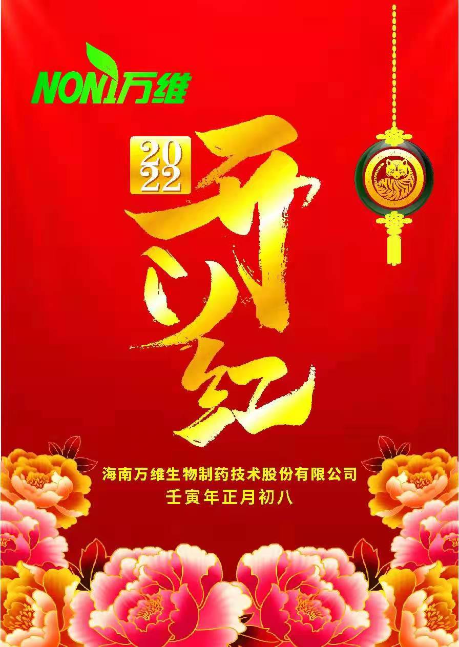 壬寅虎年正月初八,万维生物开工了!新年新气象,万维人将乘着虎虎生风的虎气,踔厉奋发,笃行不怠,博出虎年新精彩!